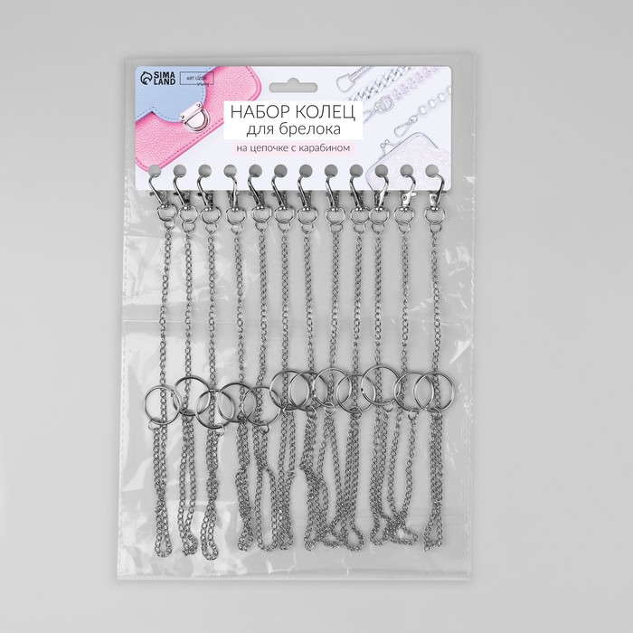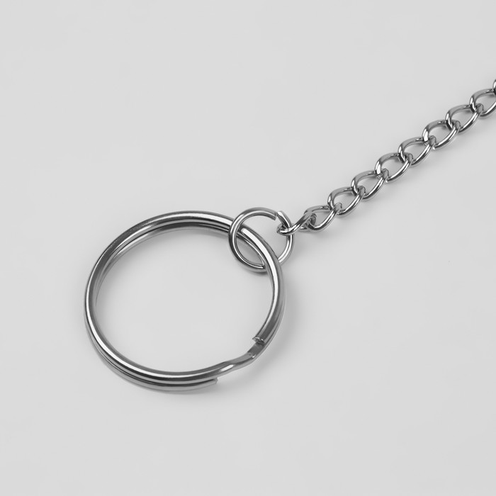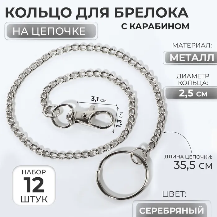 Кольцо для брелока на цепочке, с карабином, d=25 мм, 35.5 см, 12 шт., цвет серебряный