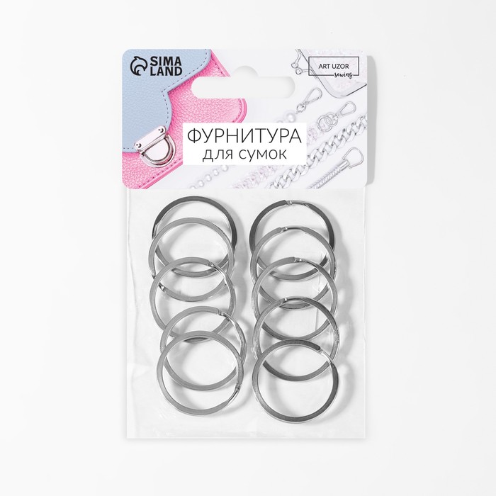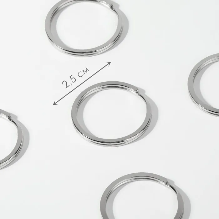 Кольцо для брелока, плоское, d=25 мм, толщина 2 мм, 10 шт., цвет серебряный