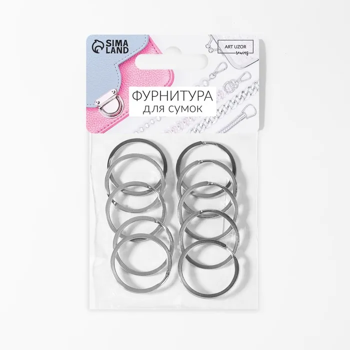 Кольцо для брелока, плоское, d=25 мм, толщина 2 мм, 10 шт., цвет серебряный — Характеристики