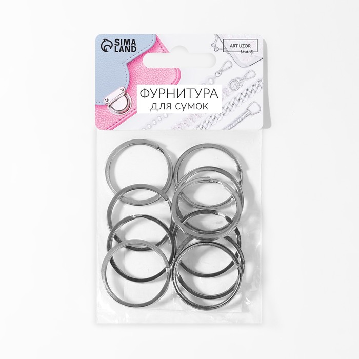 Кольцо для брелока, плоское, d=30 мм, толщина 2 мм, 10 шт., цвет серебряный