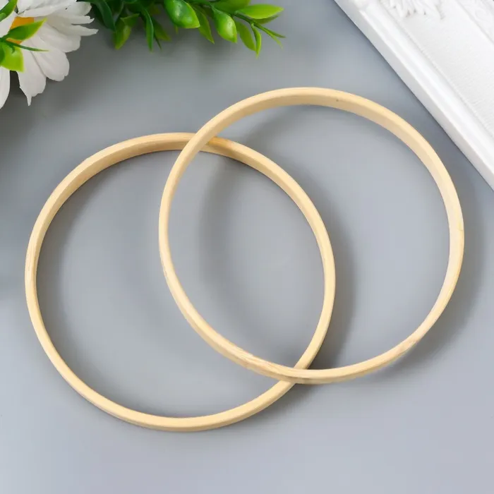 Бамбук — это не только экологически чистый материал, но и невероятно прочный, что гарантирует долговечность вашим поделкам. Компактный размер колец позволяет легко работать с ними, а их круглая форма идеально подходит для создания классических ловцов снов. Вдохновляйтесь и превращайте эти заготовки в настоящие произведения искусства, наполняя их перьями, нитями и бусинами.