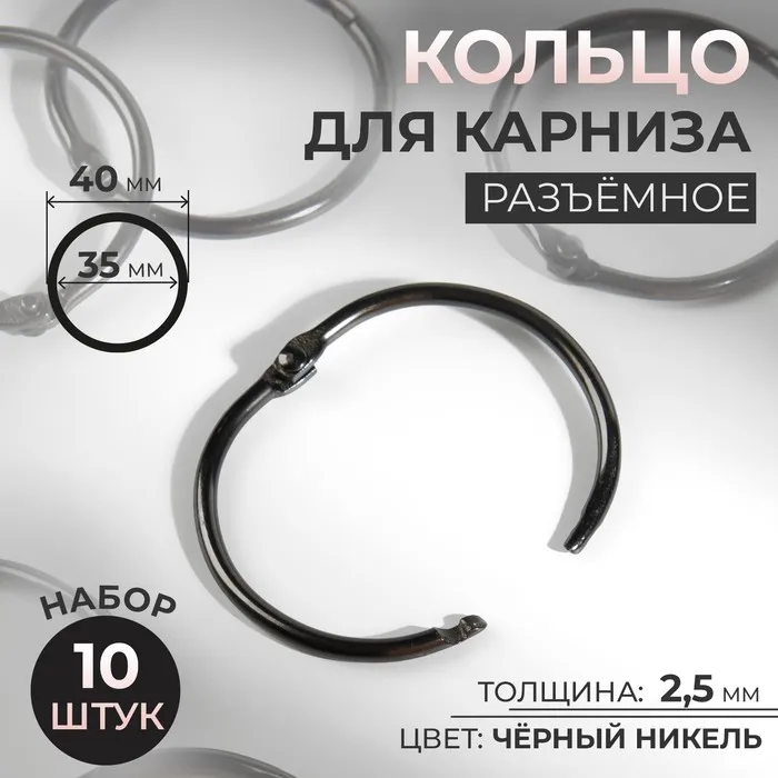 Кольцо для карниза, d = 35/40 мм, 10 шт, цвет чёрный никель — Характеристики