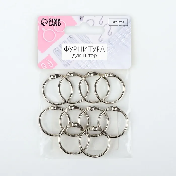 Кольцо для карниза, разъёмное, d=20/24 мм, 10 шт., цвет серебряный — Характеристики