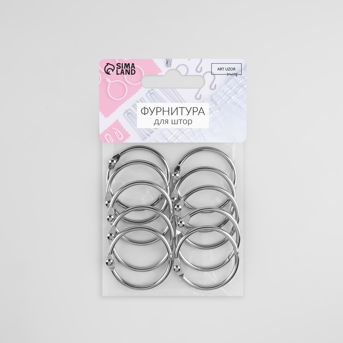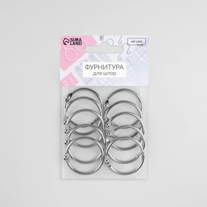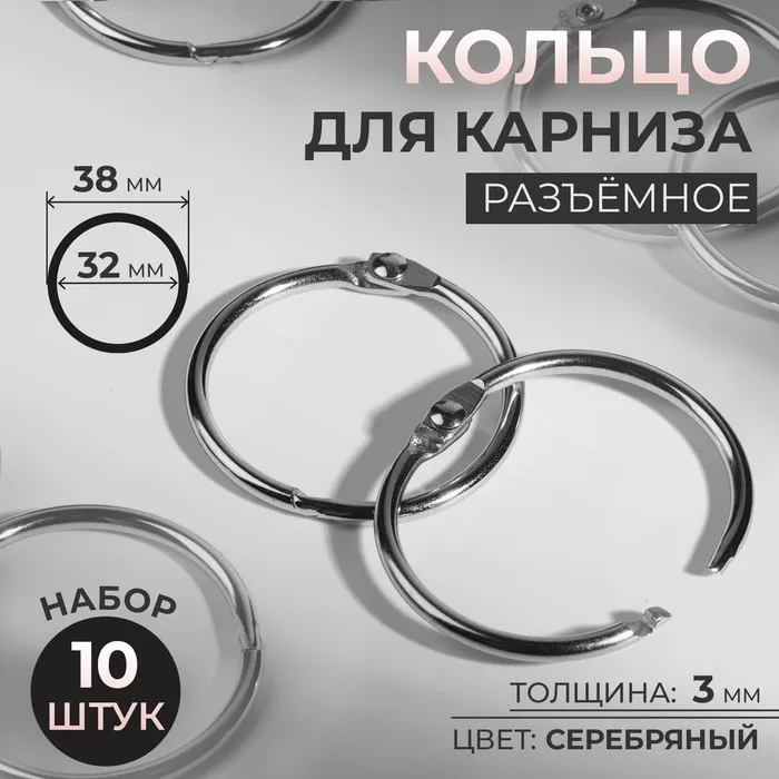 Разъёмные кольца для карниза упрощают процесс монтажа штор. Набор из десяти штук подходит для стандартных трубчатых карнизов, обеспечивая плавное перемещение портьер.
