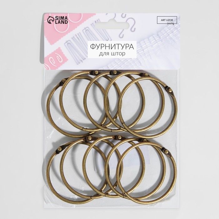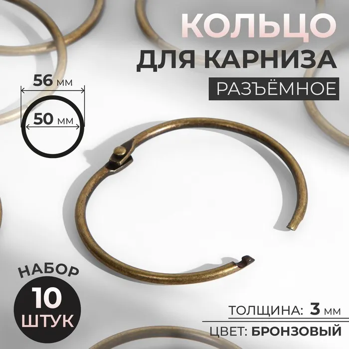 Бронзовые кольца для штор диаметром 50/56 мм подойдут для крепления как лёгких занавесок, так и плотных портьер. Металлическая конструкция обеспечивает прочность, а разъёмная форма облегчает смену текстиля. Тёплый оттенок бронзы подчёркивает глубину цвета ткани и создаёт гармонию с деревянными и металлическими элементами интерьера.