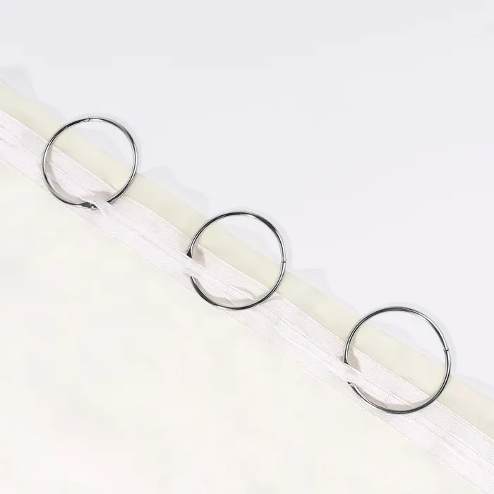 Кольцо — отличный вариант крепления штор. Поместите его на карнизе: механизм расстёгивается и позволяет присоединять фурнитуру без необходимости разбирать балку. Добавьте крючки или зажимы, и конструкция готова.