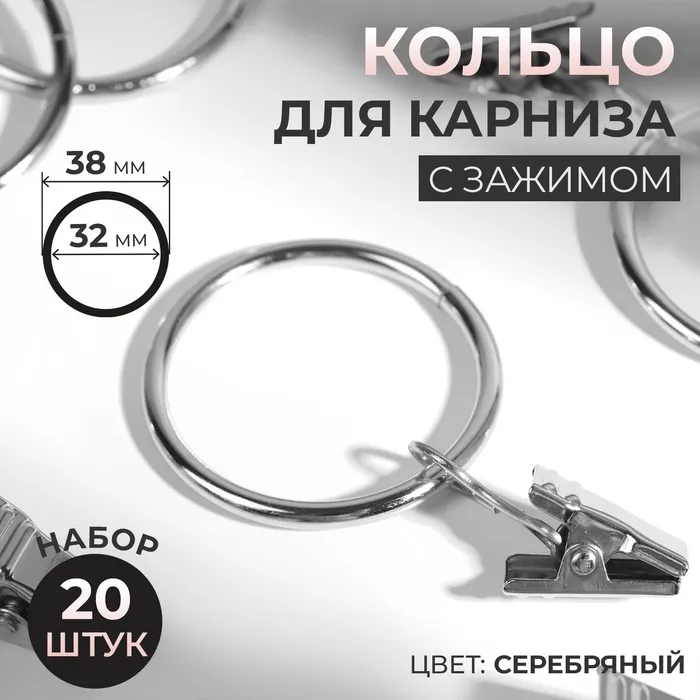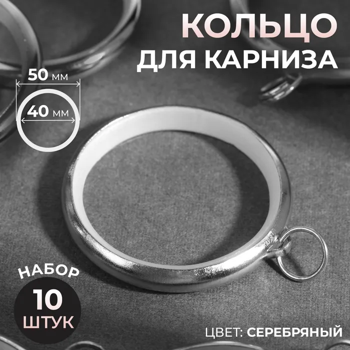 Кольцо для карниза, разъёмное, d=50/56 мм, 10 шт., цвет серебряный — Характеристики