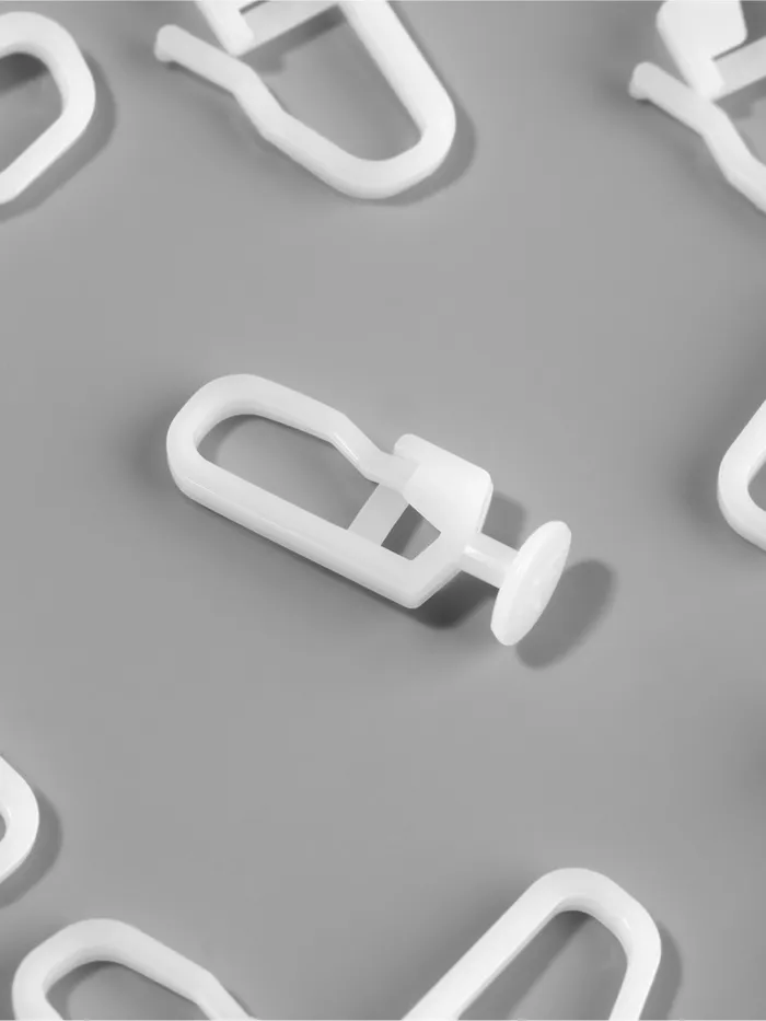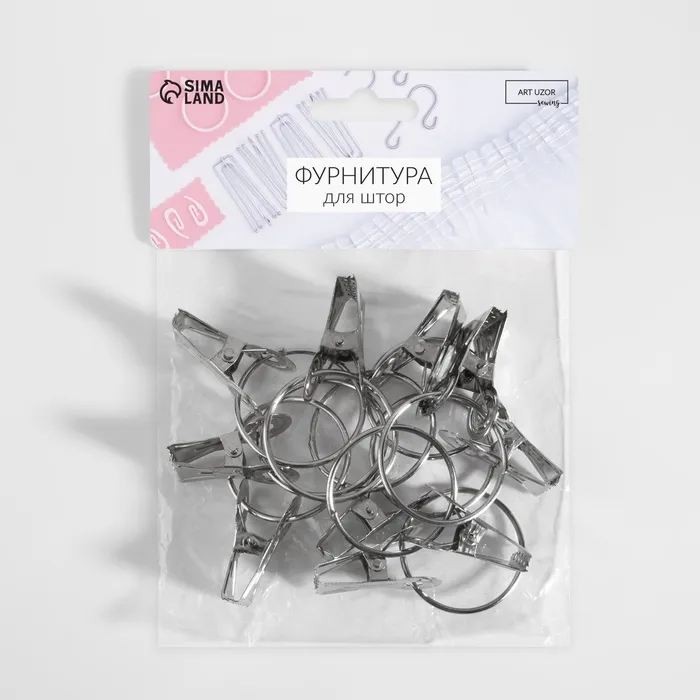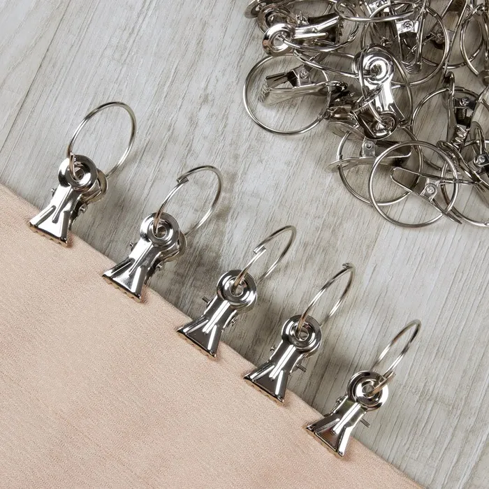 Чтобы надёжно прикрепить шторы, воспользуйтесь кольцом с зажимом. Конструкция прочно сцепит ткань, но не повредит её, выдержит даже тяжёлый текстиль и останется незаметным. Поместите изделие на карниз, и шторы будут плавно скользить по балке.