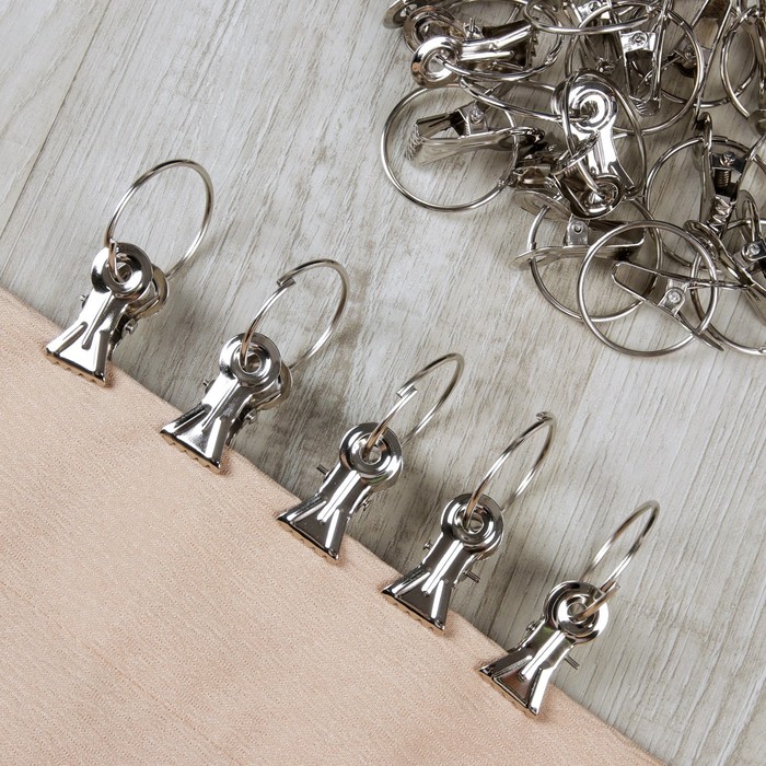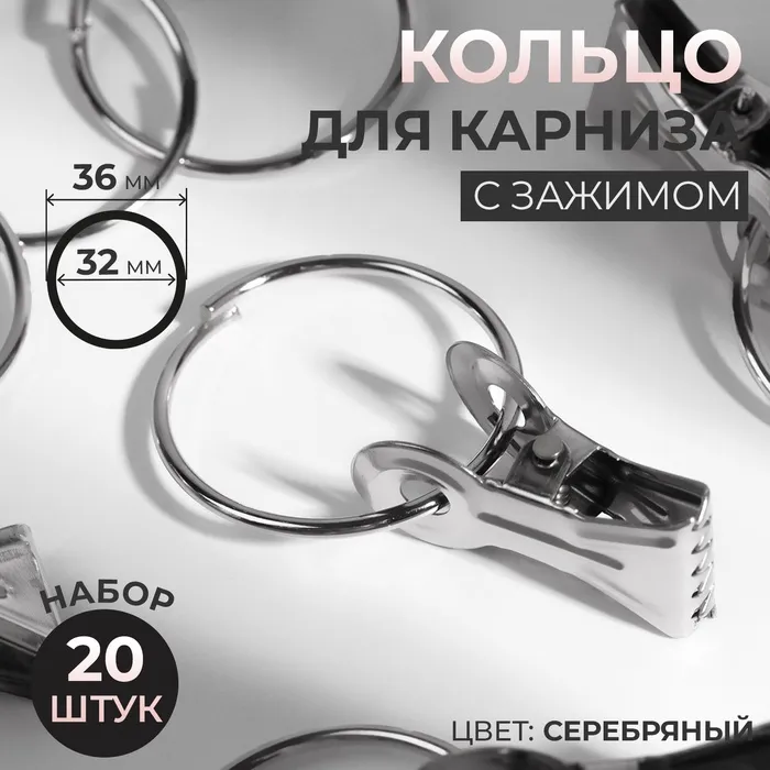 Кольцо для карниза, с зажимом, d = 32/36 мм, 20 шт, цвет серебряный — Характеристики