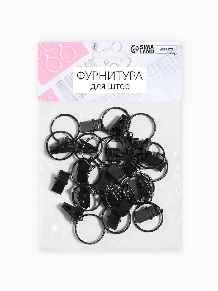 Металлические кольца с зажимом для карниза черного цвета (диаметры 22/26 мм) — это практичное решение для надежного крепления штор. В комплекте 20 штук, что позволяет легко обновить или создать стильное оформление окон в вашем доме.