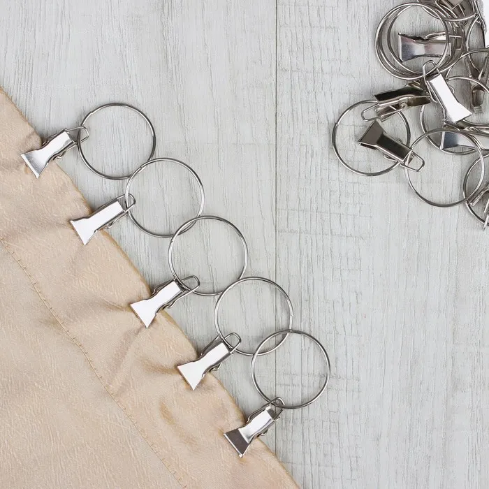 Чтобы надёжно прикрепить шторы, воспользуйтесь кольцом с зажимом. Конструкция прочно сцепит ткань, но не повредит её, выдержит даже тяжёлый текстиль и останется незаметным. Поместите изделие на карниз, и шторы будут плавно скользить по балке.