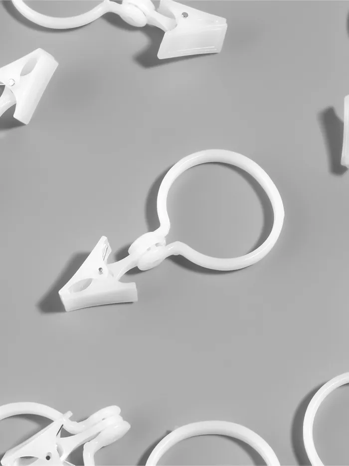 Фиксируйте шторы на карнизе крепко и аккуратно. Зажимные кольца с защёлкой — практичный выбор для тех, кто ценит удобство и надёжность в деталях. Белый цвет сочетается с любыми стенами и текстилем, а прочная конструкция из металла и пластика выдерживает плотные ткани. В наборе 12 штук — достаточно для полного оформления нескольких окон.