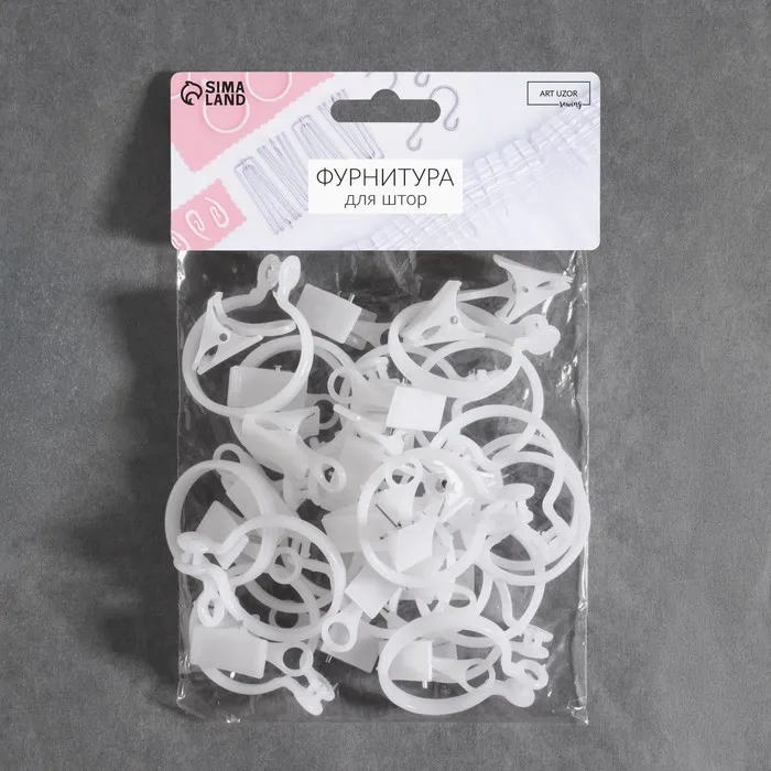 Кольцо для карниза, с зажимом, d=34/39 мм, 20 шт., белое — Характеристики