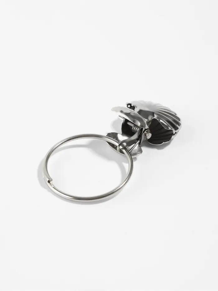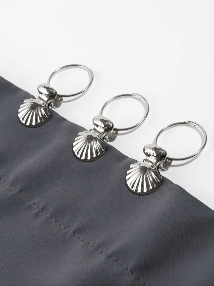 Чтобы надёжно прикрепить шторы, воспользуйтесь кольцом с зажимом. Конструкция прочно сцепит ткань, но не повредит её, выдержит даже тяжёлый текстиль и останется незаметным. Поместите изделие на карниз, и шторы будут плавно скользить по балке.