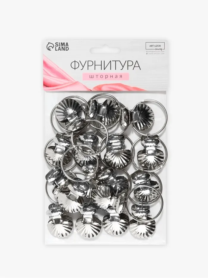 Кольцо для карниза, с зажимом «Ракушка», d=32/36 мм, 20 шт., цвет серебряный — Характеристики
