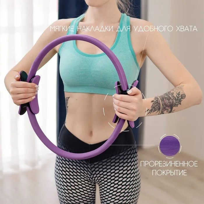 Кольцо для пилатеса ONLYTOP, d=37 см, цвет фиолетовый — Характеристики