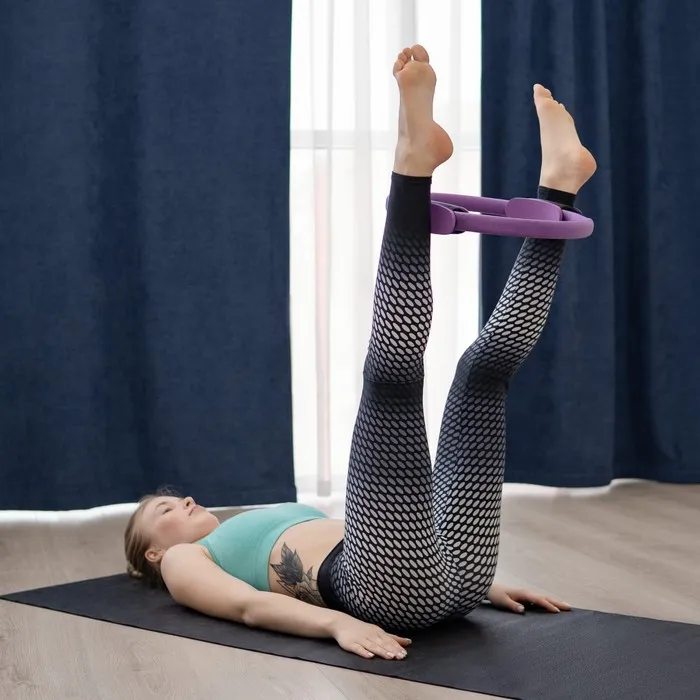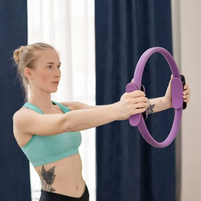 Кольцо для пилатеса - это тренажёр в виде кольца с ручками, который создаёт дополнительное сопротивление при выполнении упражнений. Изотоническое кольцо используется в пилатесе и в других низкоударных тренировках для тонуса мышц верхней и нижней части тела.