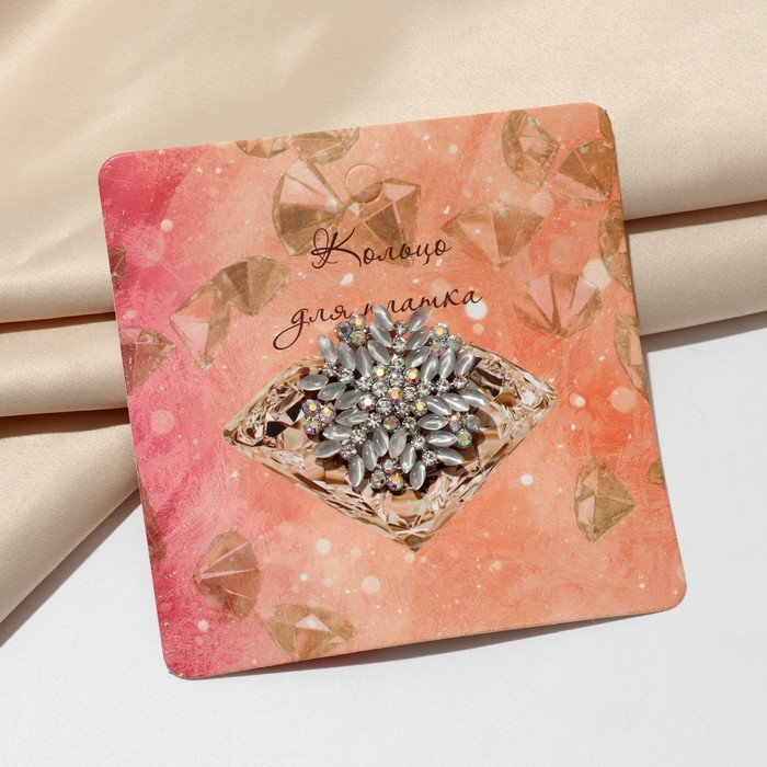 Кольцо для платка «Снежинка», радужно-белое в серебре — Характеристики