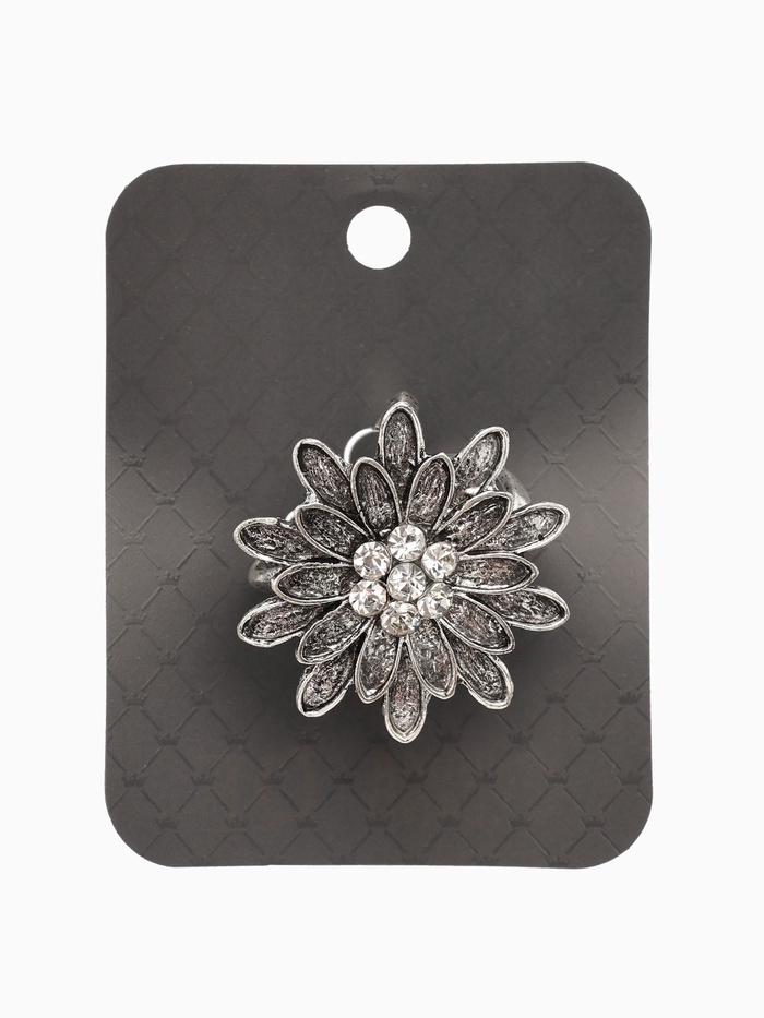 Украсьте свой стиль изысканной деталью, которая расскажет о вашей любви к природе и уважении к классике, — кольцом для платка в виде белоснежной хризантемы, обрамлённой чернёным серебром. Этот аксессуар, оформленный в духе традиционного японского искусства, придаст вашему образу утончённость и элегантность.