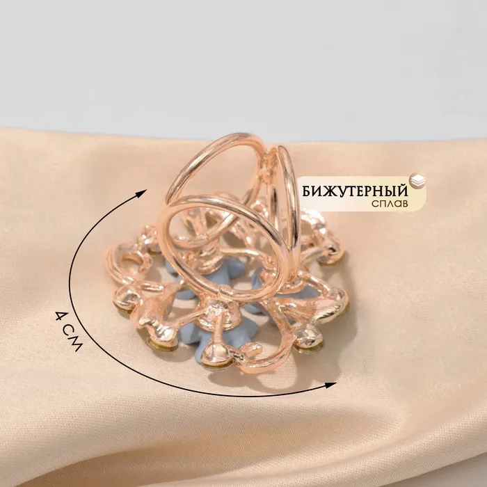 - Нежный цвет и дизайн: Голубой оттенок в сочетании с золотой фурнитурой создаёт лёгкий и воздушный образ. Украшение с растительным мотивом и стразами придаёт аксессуару изящность и свежесть.