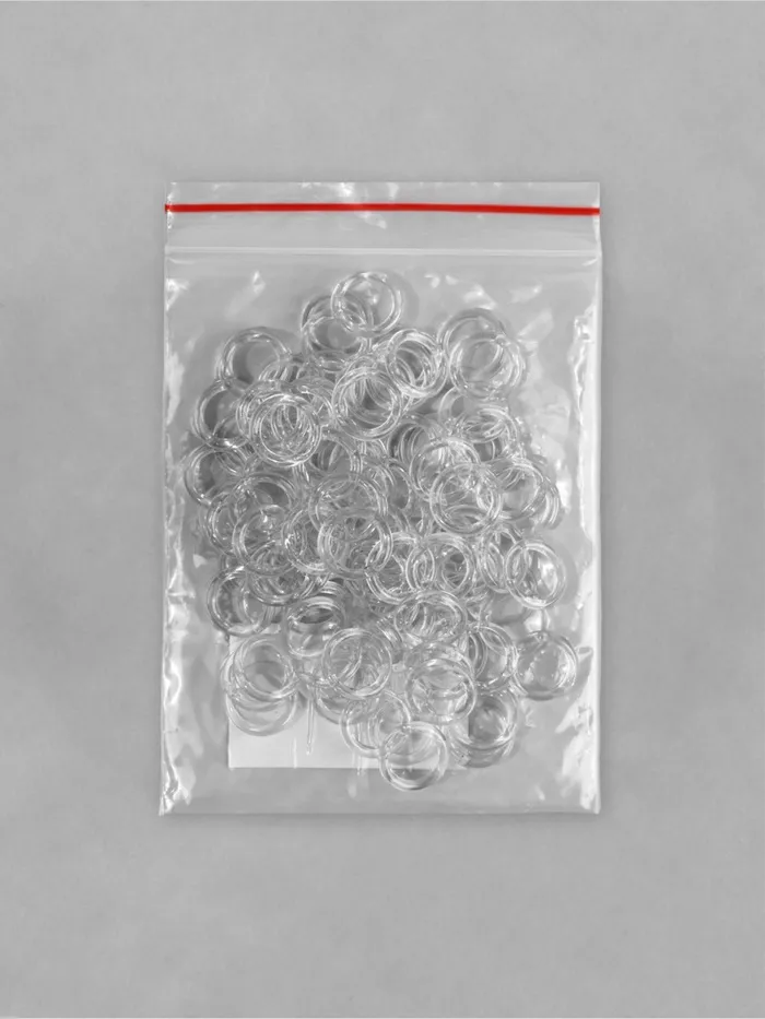 Фиксируйте римские шторы к карнизу аккуратно и надёжно. Универсальные пластиковые кольца подходят для разных типов текстильных изделий. Прозрачный цвет делает их незаметными на фоне ткани, а прочный материал сохраняет форму даже при частом использовании. Набор из 100 штук — всё необходимое для масштабных проектов и запас на будущее.