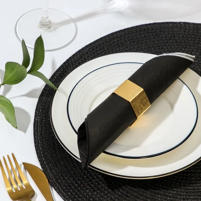 Кольцо для салфетки станет одним из любимых ваших аксессуаров. Возьмите свернутые в трубочку салфетки поместите их внутрь кольца. Такой вариант оформления стола идеально подойдёт для любых торжественных случаев.
