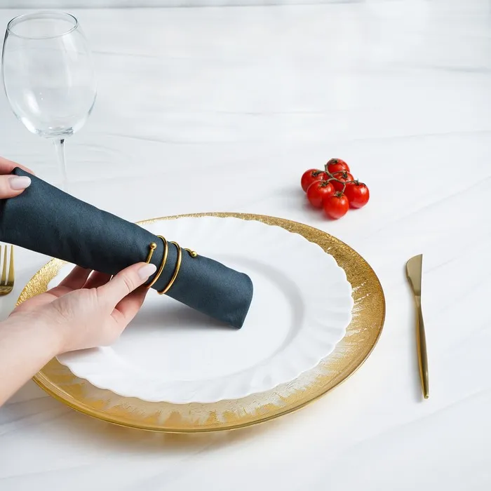 Кольцо для салфетки станет одним из любимых ваших аксессуаров. Возьмите свернутые в трубочку салфетки поместите их внутрь кольца. Такой вариант оформления стола идеально подойдёт для любых торжественных случаев.