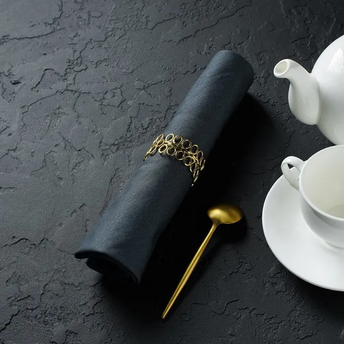 Кольцо для салфетки станет одним из любимых ваших аксессуаров. Возьмите свернутые в трубочку салфетки поместите их внутрь кольца. Такой вариант оформления стола идеально подойдёт для любых торжественных случаев.