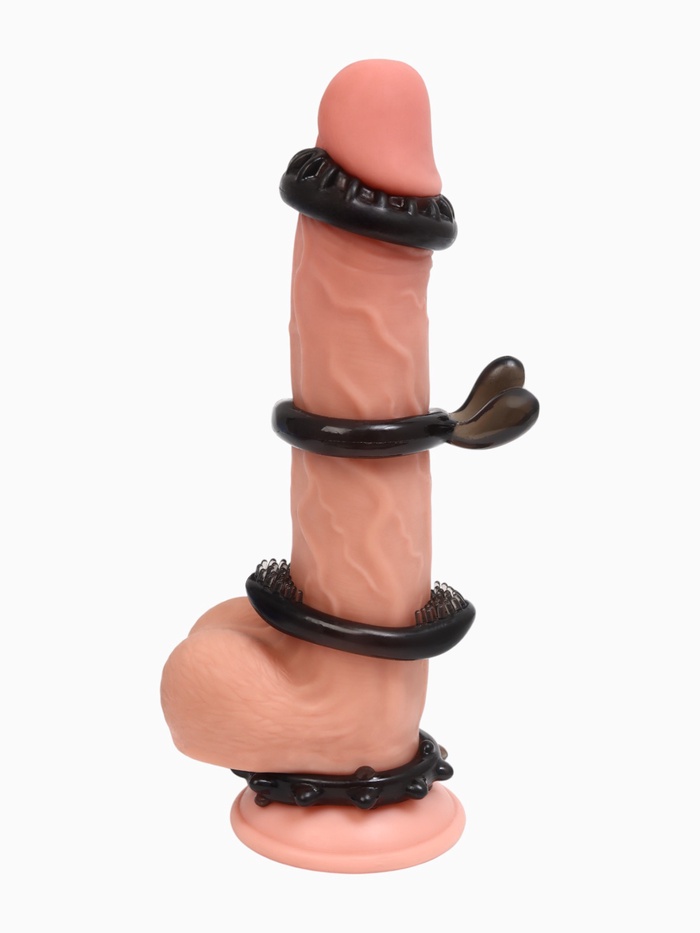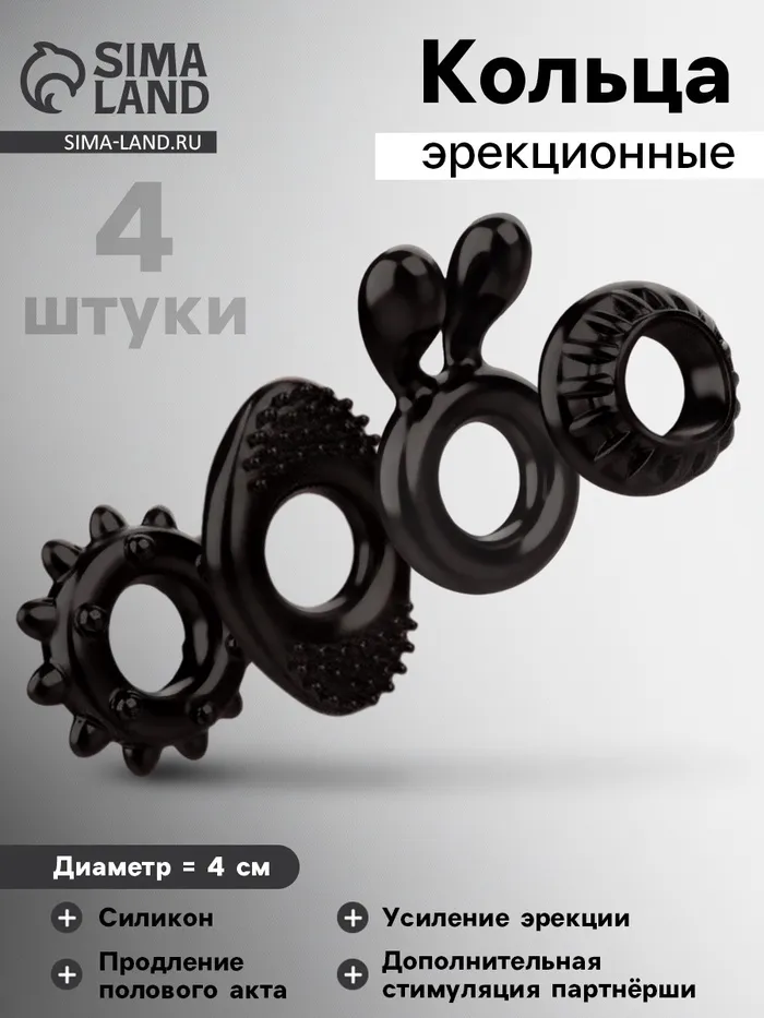 Набор 4 эрекционных колец выполнен из гипоаллергенного силикона.