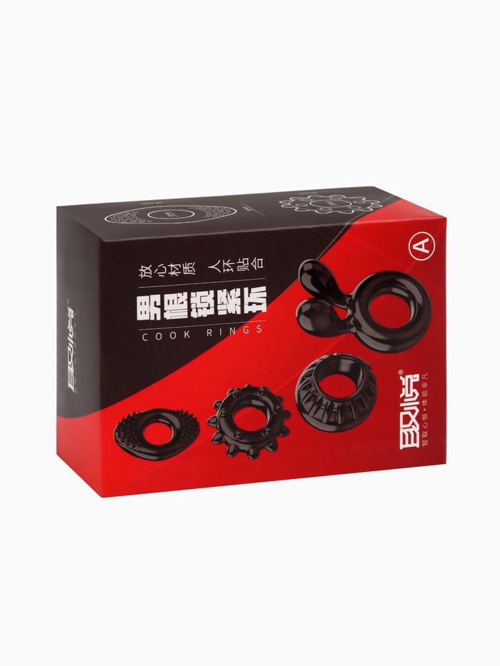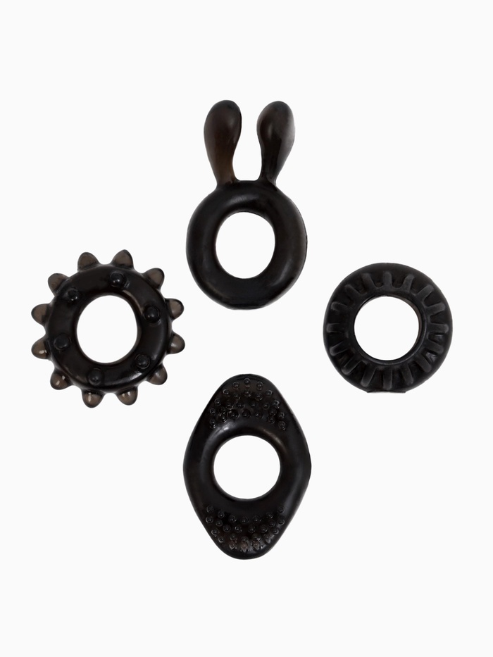 Кольцо эрекционное Box A, набор 4 шт., гелевый силикон, черный