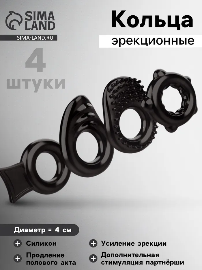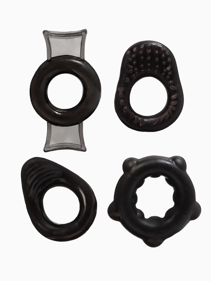 Набор 4 эрекционных колец выполнен из гипоаллергенного силикона.
