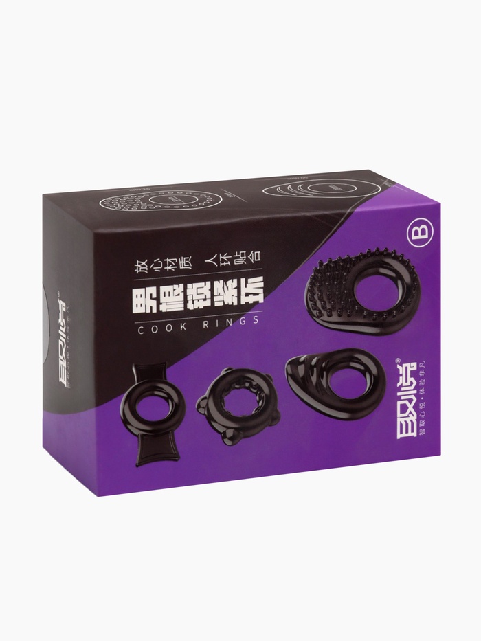 Кольцо эрекционное Box B, набор 4 шт., гелевый силикон, черный — Характеристики