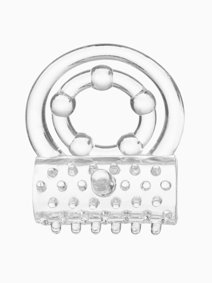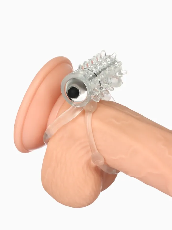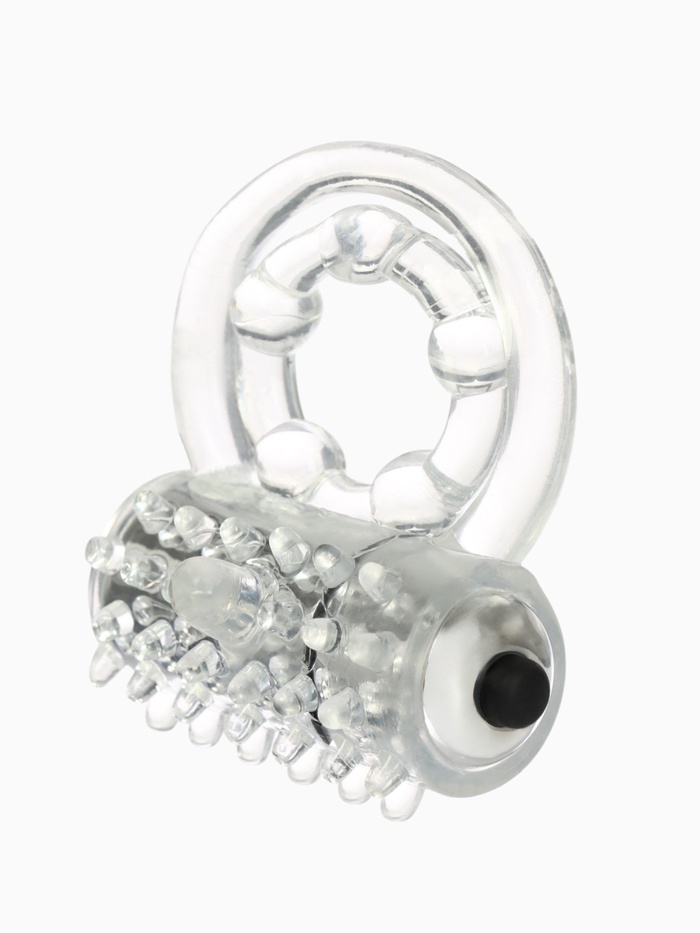 Кольцо эрекционное двойное и вибропуля с вибрацией и стимуляцией, силикон, прозрачный