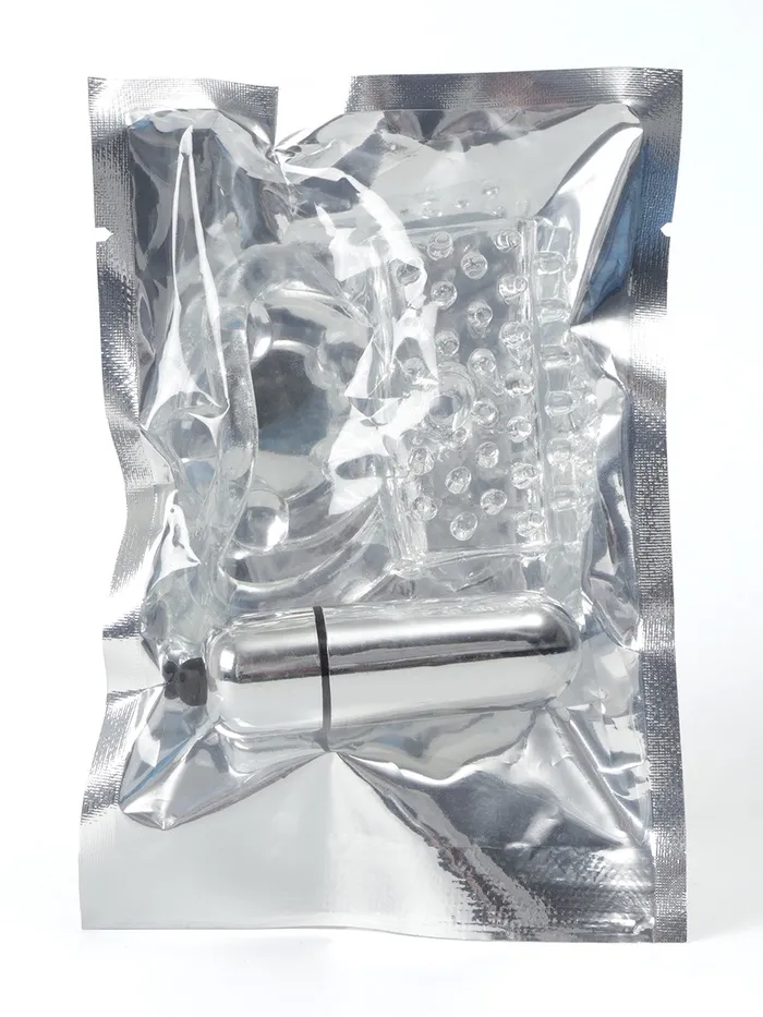 Набор из эрекционного кольца и вибропули (питание: 3 батарейки типа LR44).