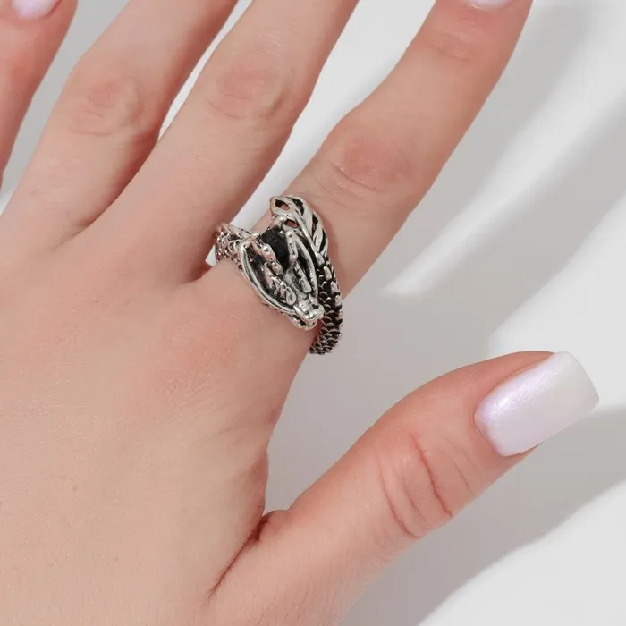 Кольцо «Фафнир» дракон, цвет чернёное серебро, безразмерное — Характеристики