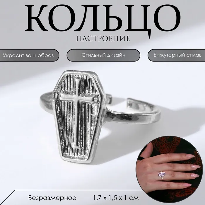 Кольцо «Готика» крест, цвет серебро, безразмерное — Характеристики