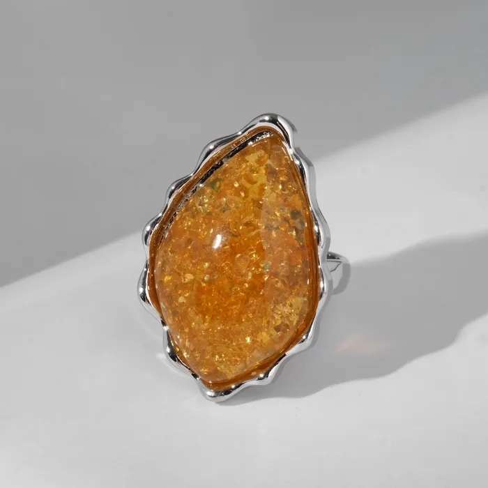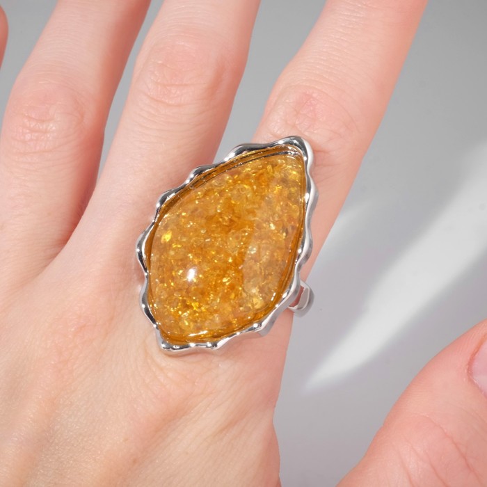 Кольцо «Изыск» ромб янтарный, цвет коричневый в серебре, безразмерное — Характеристики