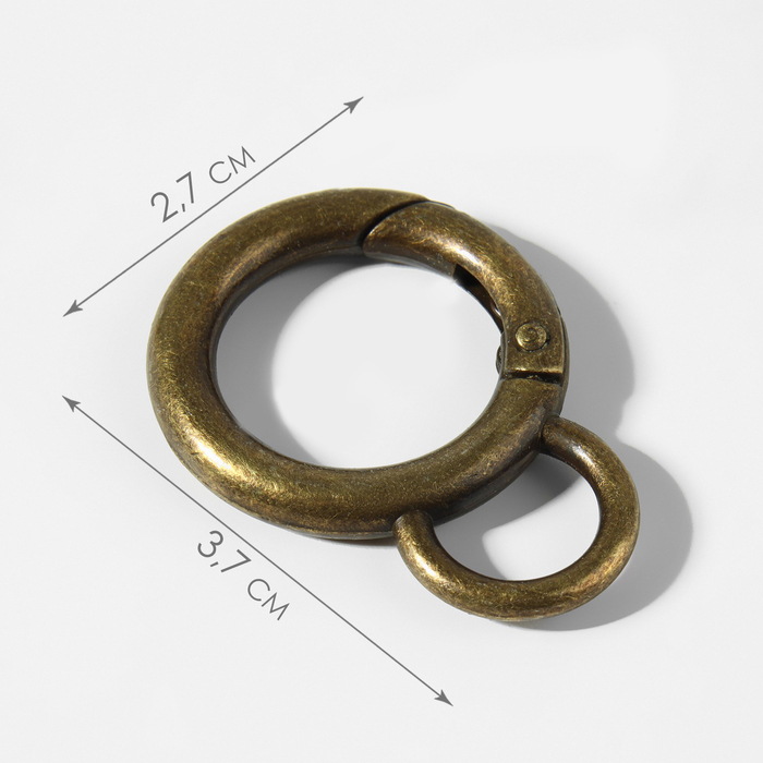 Кольцо-карабин, 37 мм, d=27/19 мм, толщина - 4 мм, с креплением 12×3 мм, 5 шт., цвет бронзовый — Характеристики