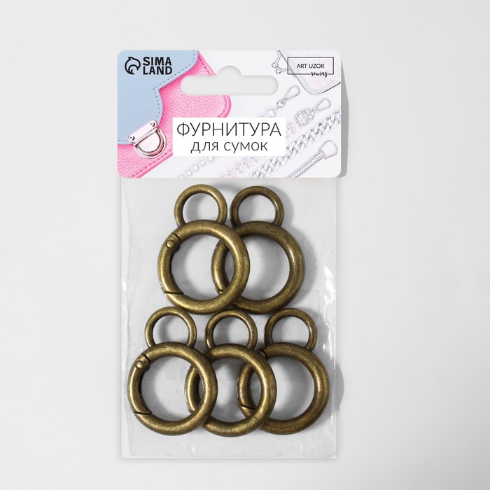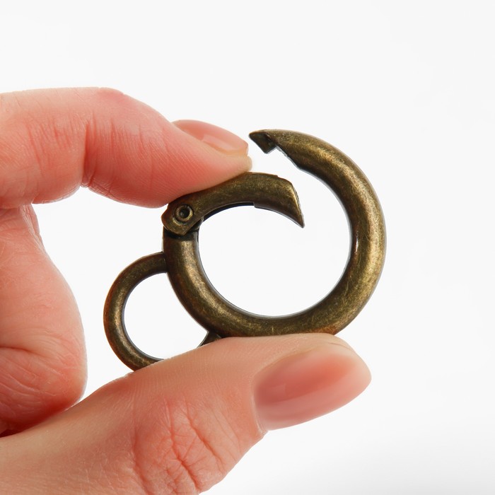 Кольцо-карабин, 37 мм, d=27/19 мм, толщина - 4 мм, с креплением 12×3 мм, 5 шт., цвет бронзовый