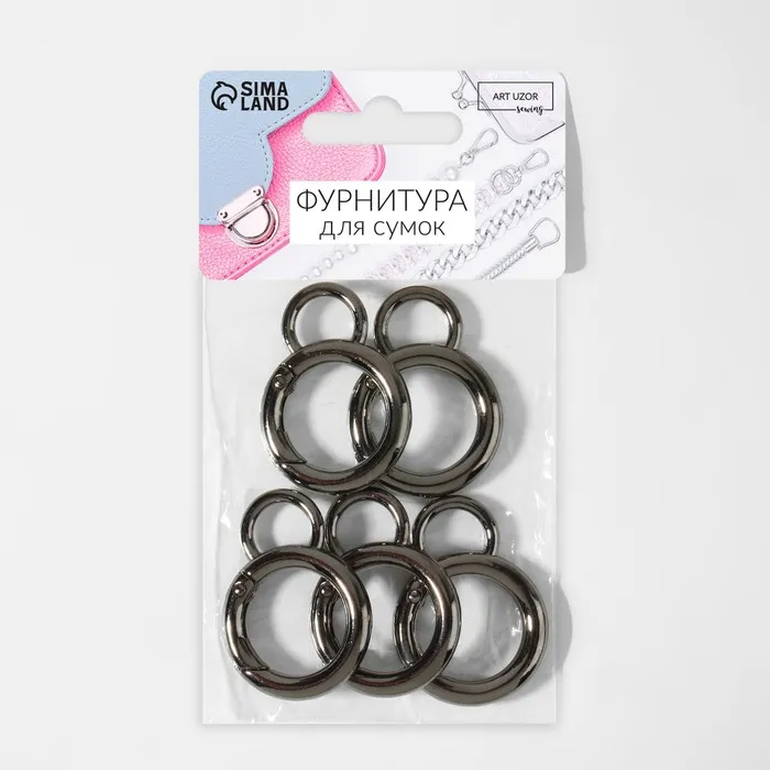 Кольцо-карабин, 37 мм, d=27/19 мм, толщина - 4 мм, с креплением 12×3 мм, 5 шт., цвет чёрный никель — Характеристики