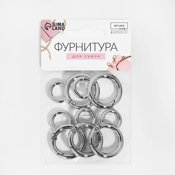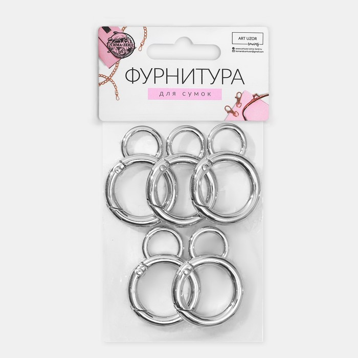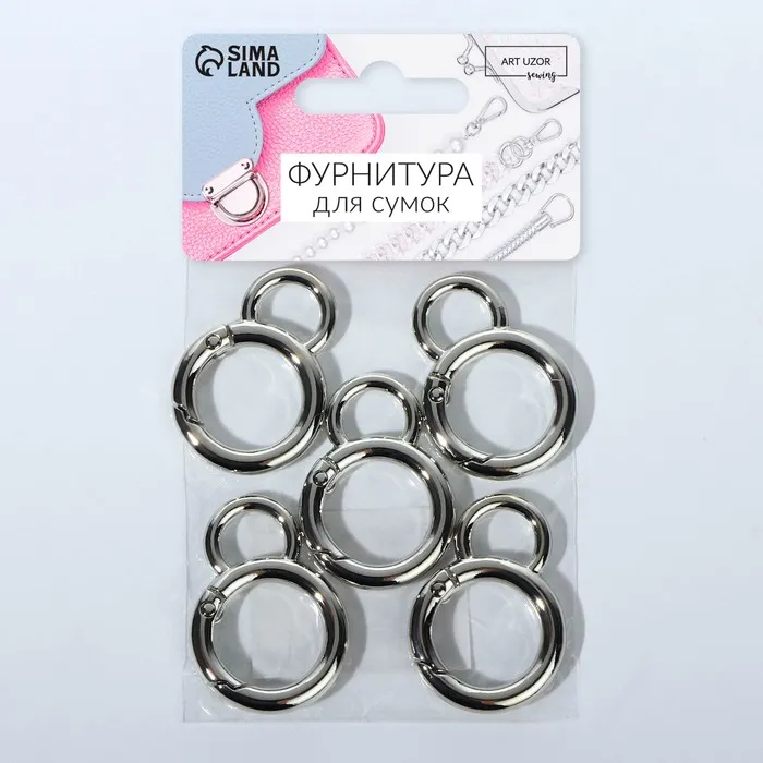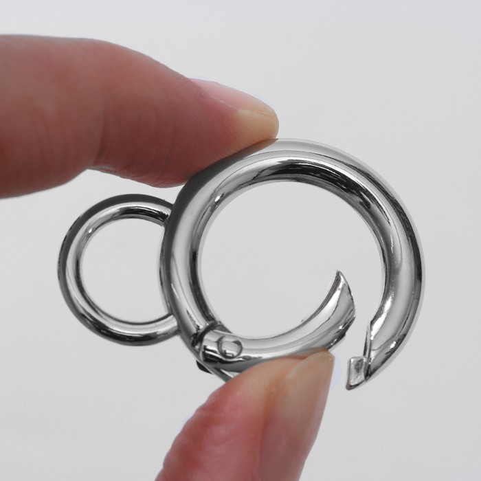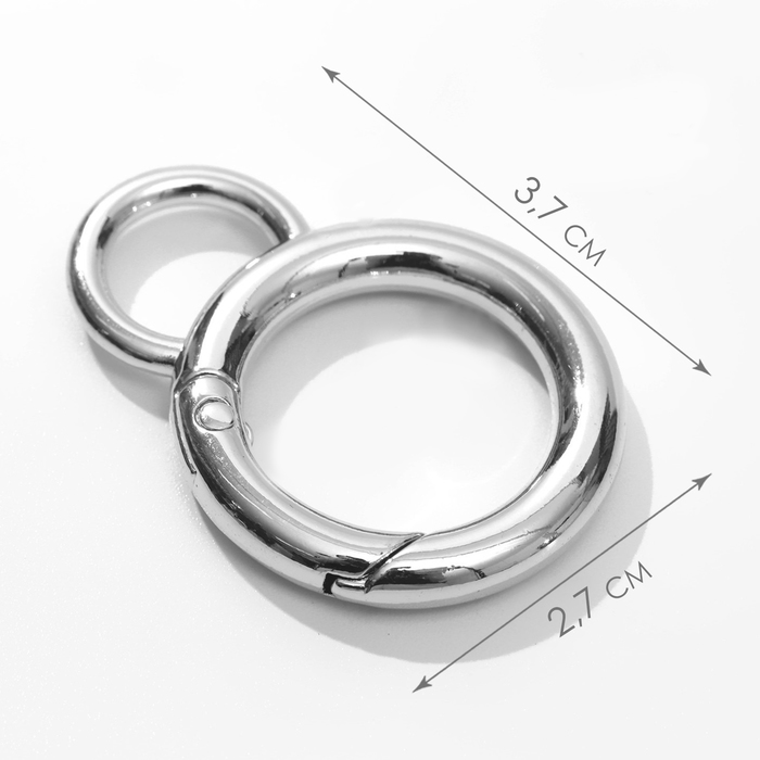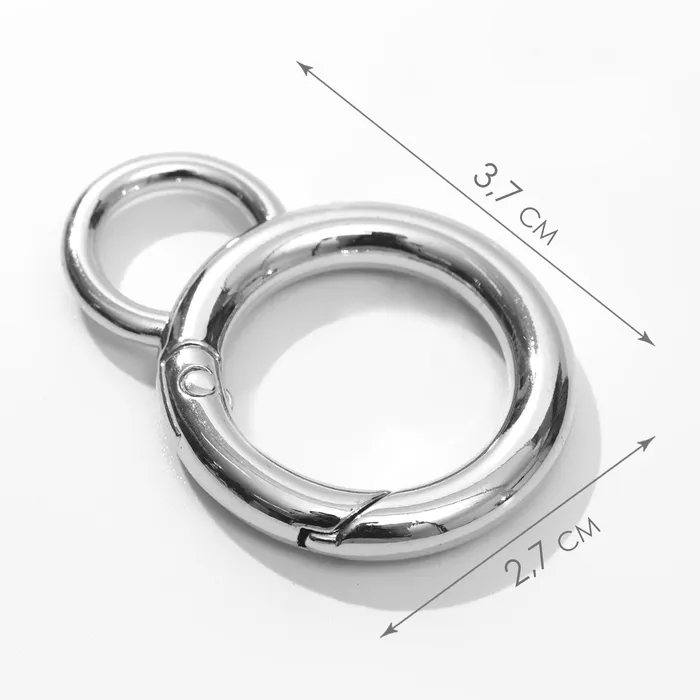 Кольцо-карабин, 37 мм, d=27/19 мм, толщина - 4 мм, с креплением 12×3 мм, 5 шт., цвет серебряный — Характеристики