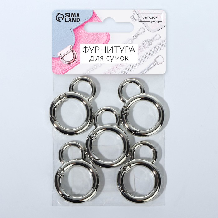 Карабин металлический, 39×24 мм / 20×2 мм, 6 шт., цвет серебряный