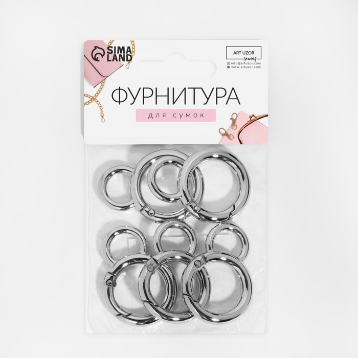 Карабин металлический, 40×25 мм / 21×2 мм, 10 шт., цвет серебряный