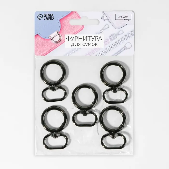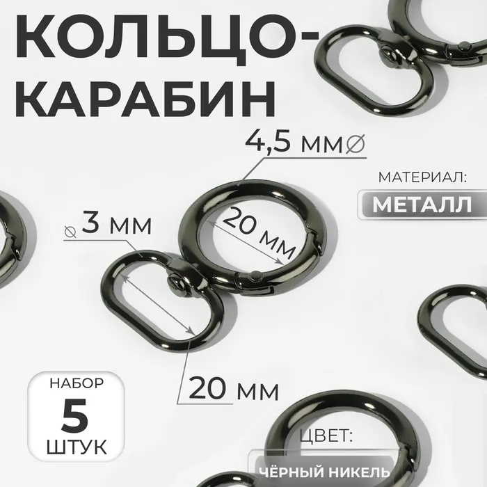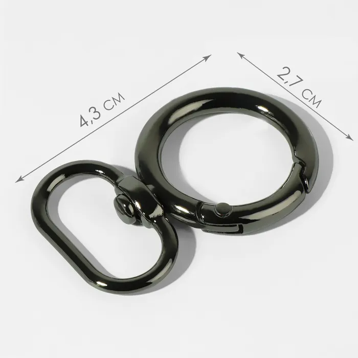 Кольцо-карабин, 43 мм, d=27/19 мм, толщина - 4.5 мм, с креплением 20×3 мм, 5 шт., цвет чёрный никель — Характеристики
