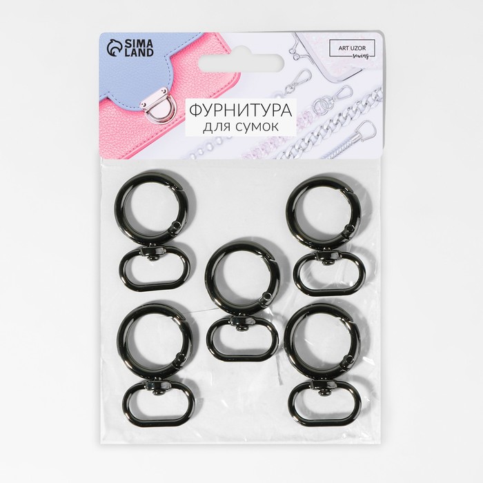 Кольцо-карабин, 43 мм, d=27/19 мм, толщина - 4.5 мм, с креплением 20×3 мм, 5 шт., цвет чёрный никель