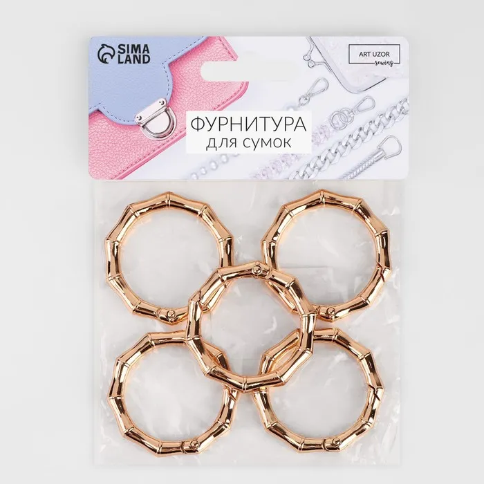 Кольцо-карабин «Бамбук», d=32/44 мм, толщина - 4 мм, 5 шт., цвет золотой — Характеристики