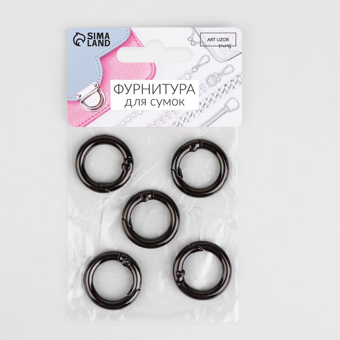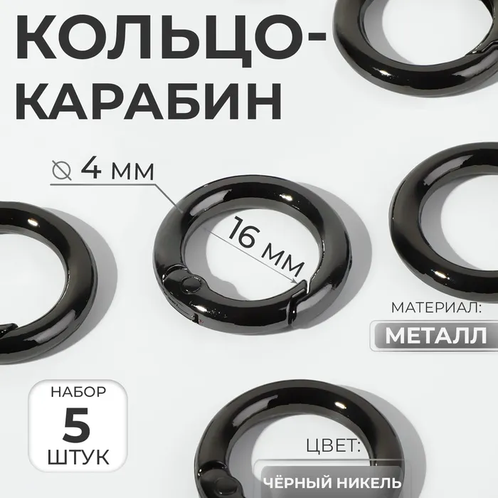 Кольцо-карабин, d=16/24 мм, толщина - 4 мм, 5 шт., цвет чёрный никель