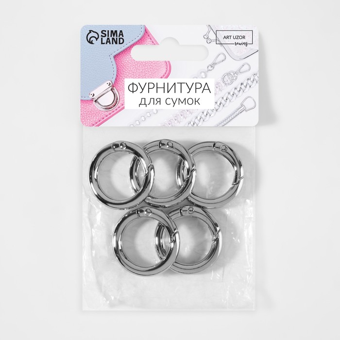 Кольцо-карабин, d=20/28 мм, толщина - 4 мм, 5 шт., цвет серебряный — Характеристики