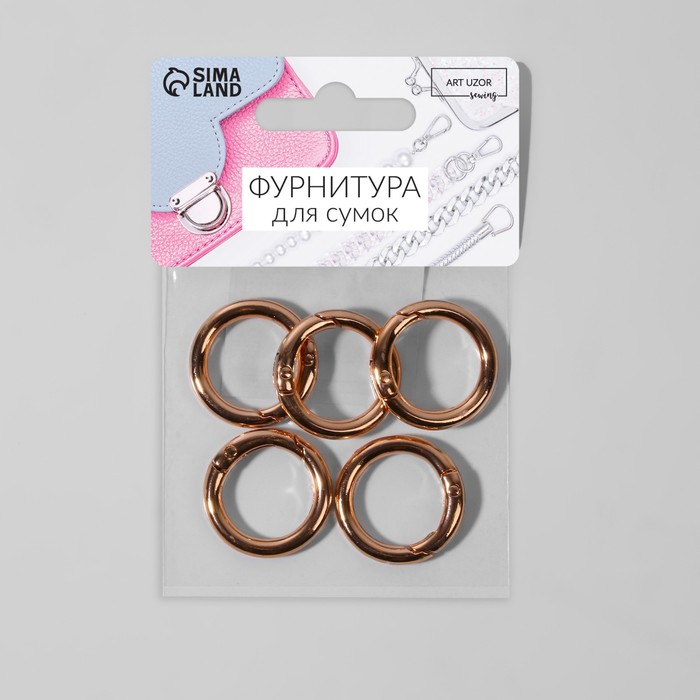 Кольцо-карабин, d=20/28, толщина - 4 мм, 5 шт., цвет розовое золото
