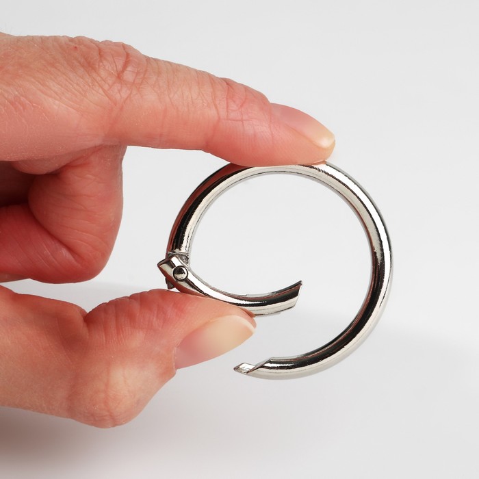 Серебристый карабин с увеличенным кольцом — универсальное решение для надежного крепления крупных предметов. Его усиленная конструкция справляется с ключами, инструментами и снаряжением, где нужна особая прочность. Металлическая основа гарантирует долговечность даже при активном использовании.